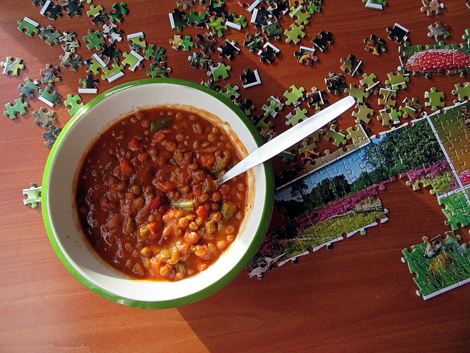 BeantwoordenVerwijderenThe soup looks delicious. The puzzle looks like it is coming along just fine. Have a blessed day. Madeline